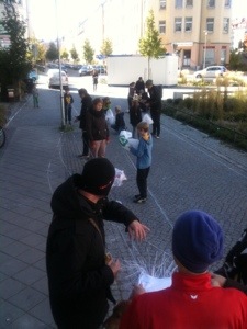 Tag der offenen Tür bei SoF in der Talstraße. Wir bauen Straßenfußbälle mit unseren Gästen.