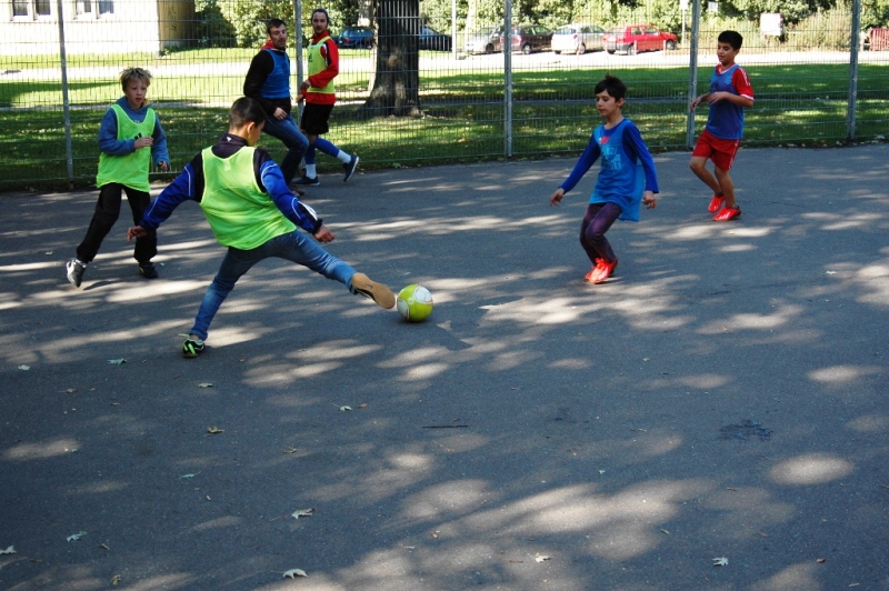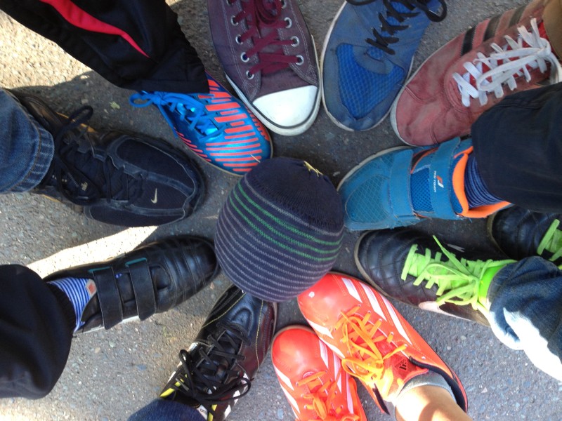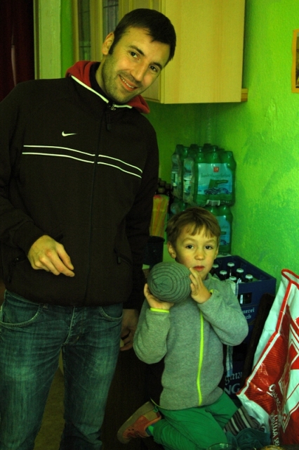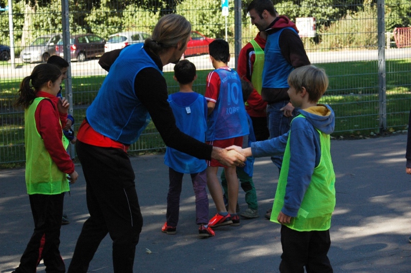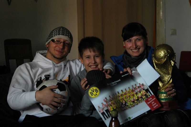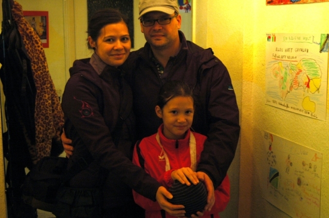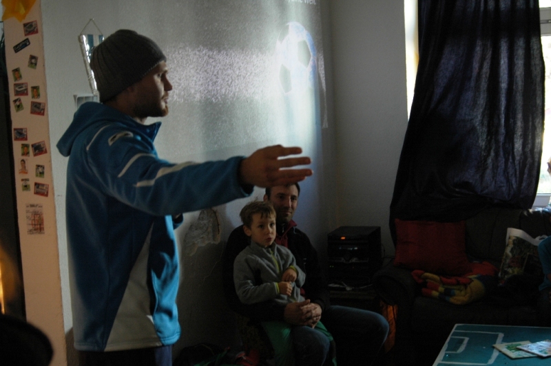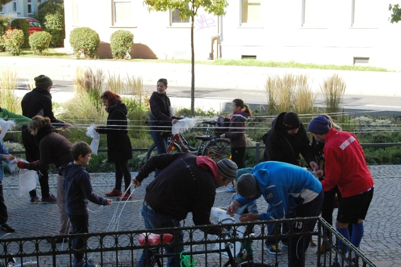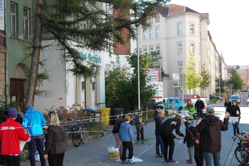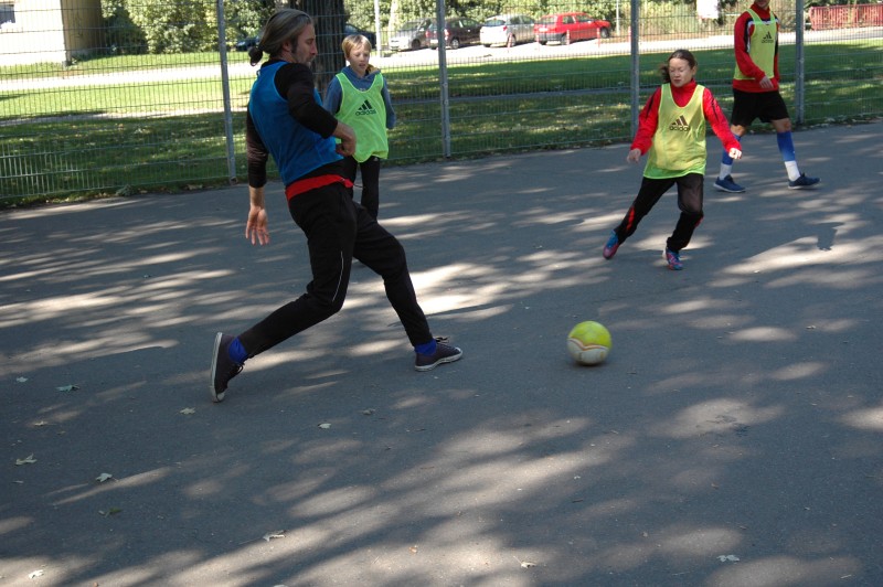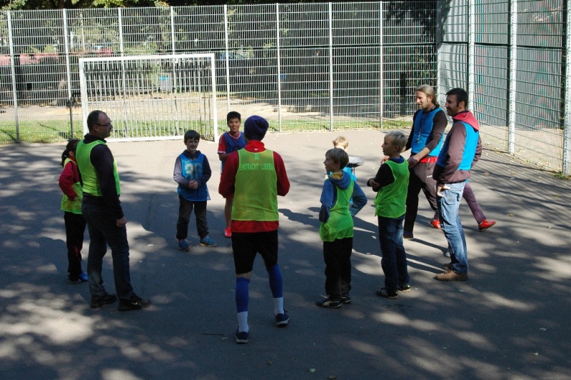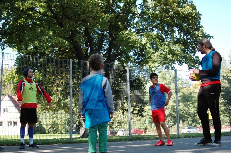 Nach dem freundlichen Empfang bauten Kinder und ihre Eltern aus Erfurt und Weimar Straßenfußbälle nach der gleichen Methode, wie in Sambia Fußbälle hergestellt werden. Aus Plastiktüten, Gewebesäcken und einer Socke. Damit läßt sich super kicken. Und das wollten wir natürlich dann auch gleich im Anschluß beweisen. Im Stadion „Bolzer am Boyneburgufer“ standen sich das Team „Yellow Rockstars“ und die „Blue Schweini’s – GrunzGrunz“ gegenüber. Nach 3 x 10 Minuten zeigte die Anzeigetafel ein grandioses 12:12. Ein spannendes und mit Höhepunkten gespicktes Orchester der Torraumszenen. So etwas hatten die frenetisch feiernden fünf Zuschauer auf den Tribünen noch nicht gesehen.