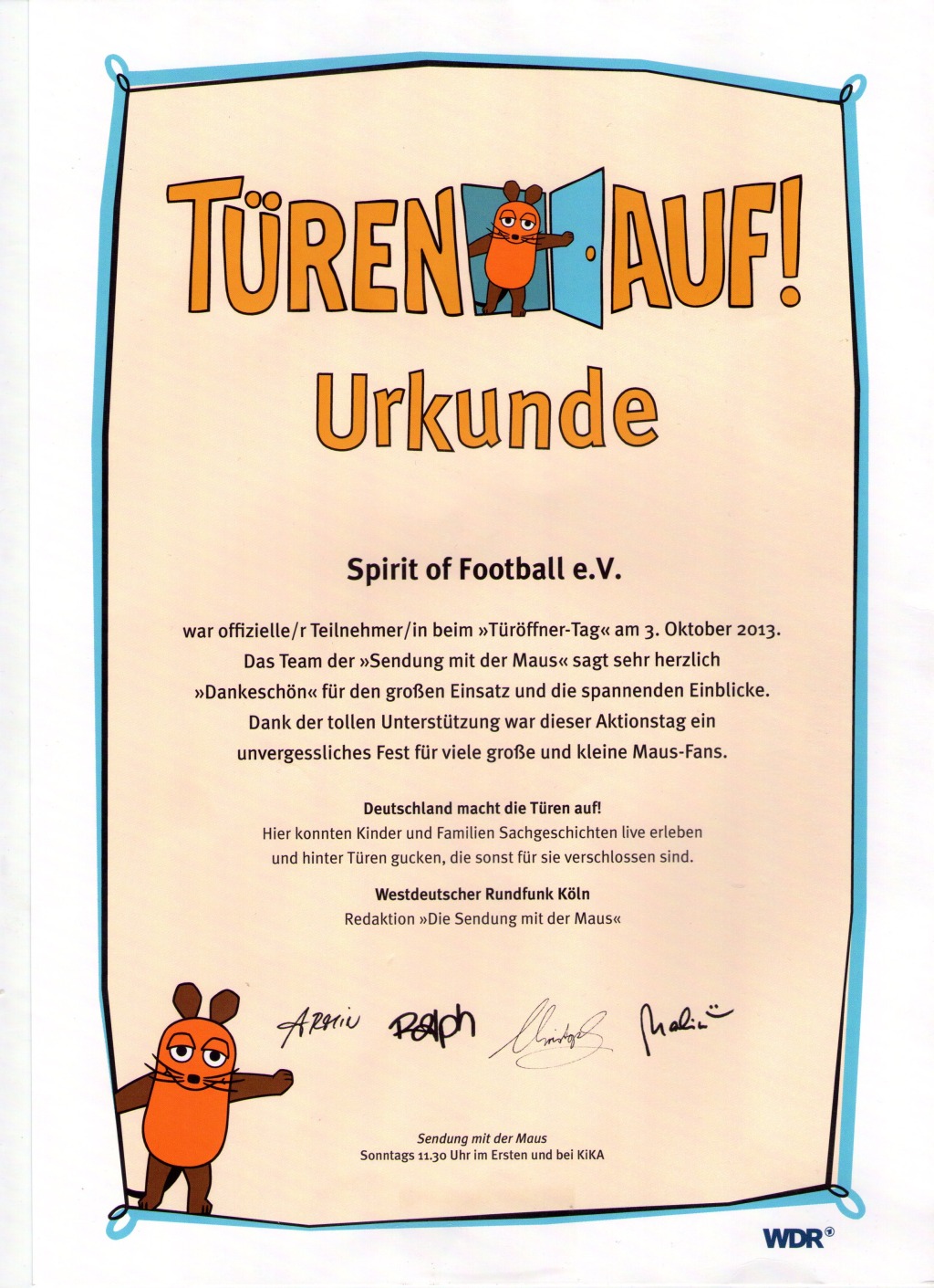 Spirit of Football’s Maus Türöffner-Tag am Tag der deutschen Einheit startete 11 Uhr mit einer Einführung in die Welt des Spirit of Football. Ober-MausFan Marc-Manuel begrüßte die Gäste, die den Weg zur Talstraße 16 im Erfurter Wächterhaus gefunden hatten. Der Türöffner-Tag ist ein Tag, an dem MausFans für MausFans ihre Türen öffnen können, hinter denen sich etwas Interessantes verbirgt und die sonst verschlossen sind. Und so konnten alle großen und kleinen Besucher sehen, was Spirit of Football im Erdgeschoß so alles treibt.