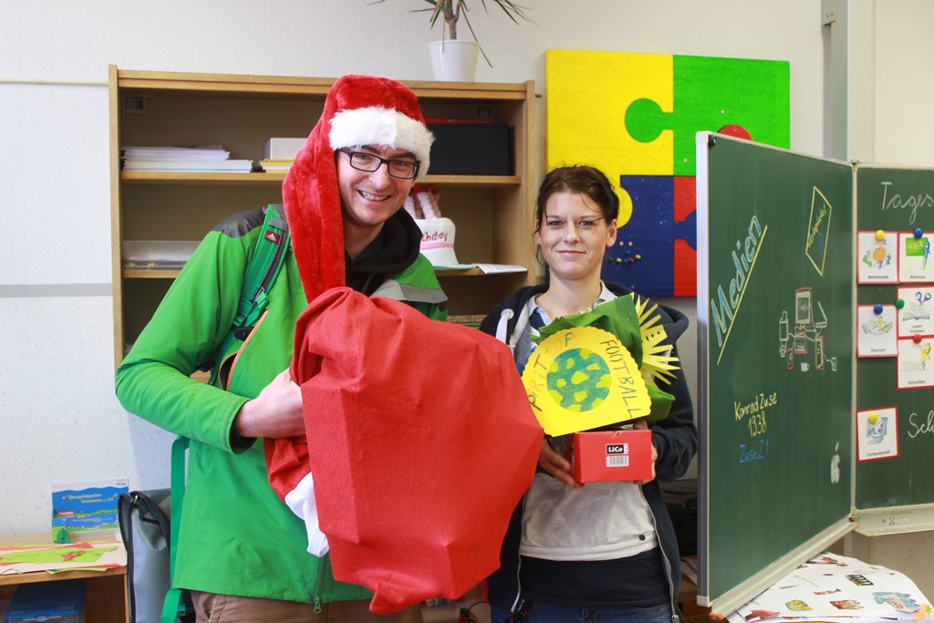 Erfurt. HoHoHo!!! Der FairPlay-Fußball-Weihnachten besuchte am Donnerstag drei Grundschulen in Erfurt. Alle Kinder und Jugendlichen, die in diesem Jahr fair gespielt und sich fair verhalten hatten, wurden mit einer kleinen Überraschung belohnt.
