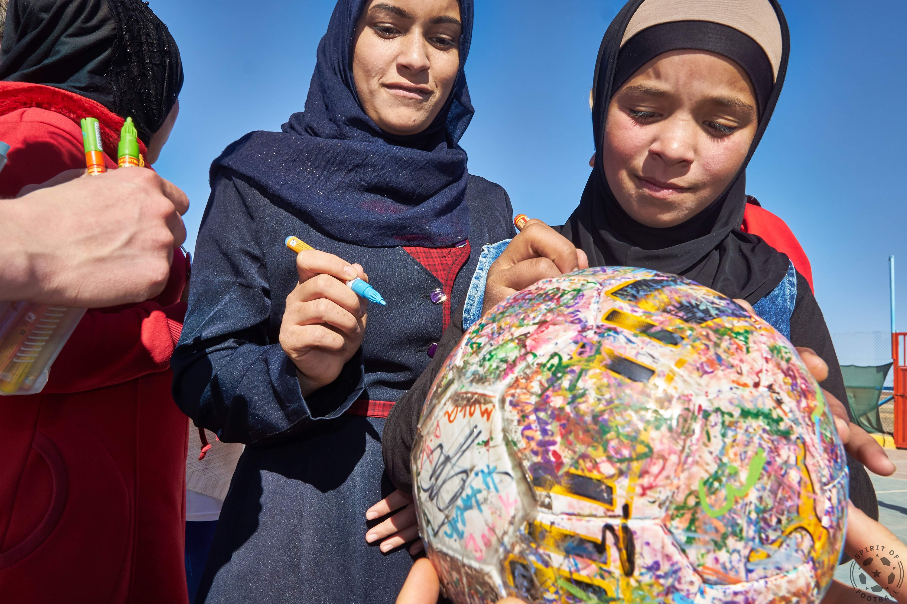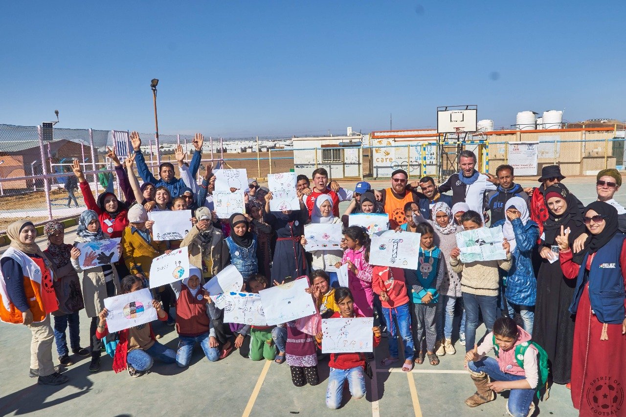Wow…was für ein besonderer Tag! Heute haben unsere 22 Habibis und Habibtis zum ersten Mal mit 80 Jungs und Mädels Spirit of Football Workshops im Azraq Camp durchgeführt und es war amazing und großartig!!