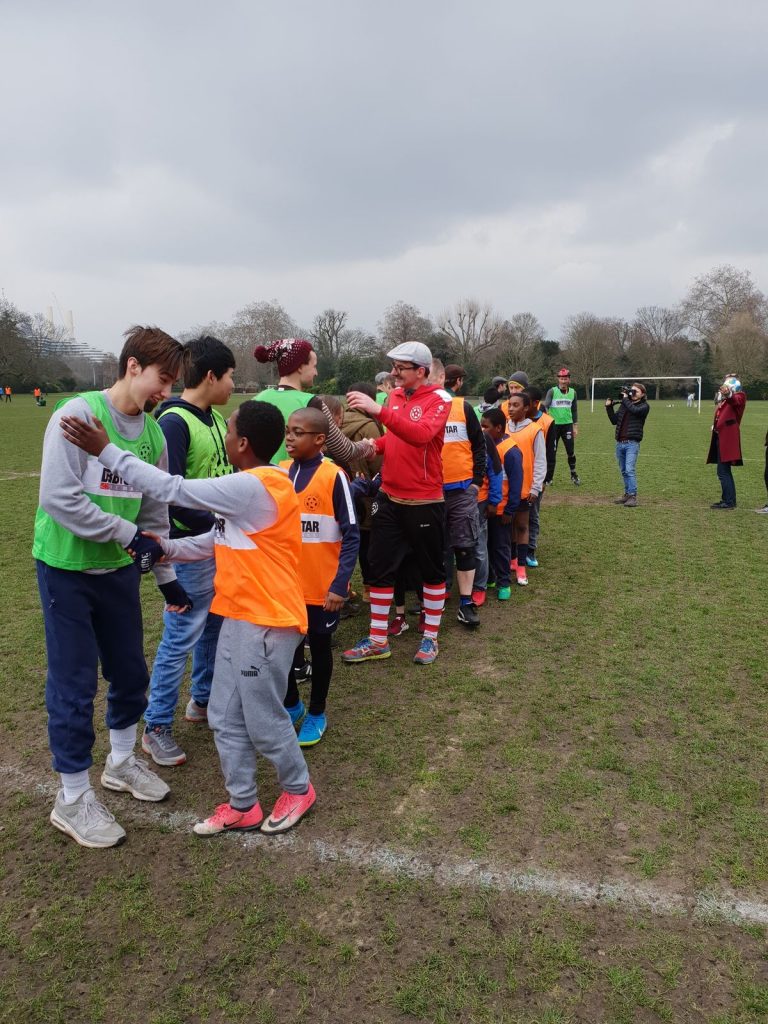 Fünfte Ballreise zur WM nach Russland am Sonntag im Londoner Battersea Park gestartet 2018 03 25 kick off batterea park-18
