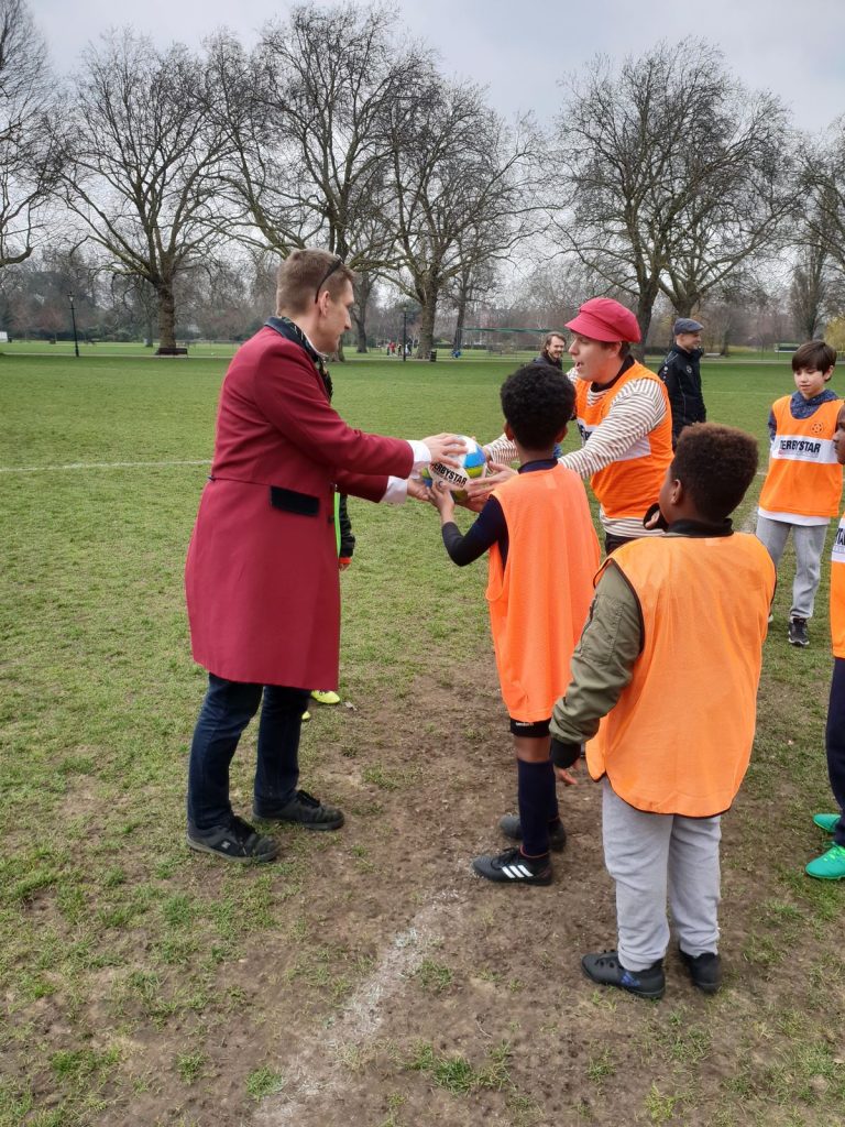 Fünfte Ballreise zur WM nach Russland am Sonntag im Londoner Battersea Park gestartet 2018 03 25 kick off batterea park-22