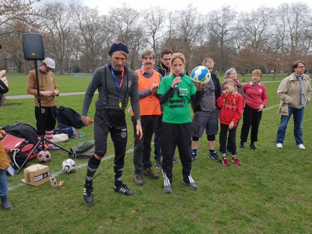 Fünfte Ballreise zur WM nach Russland am Sonntag im Londoner Battersea Park gestartet 2018 03 25 kick off batterea park-28