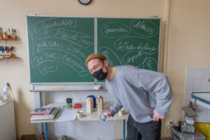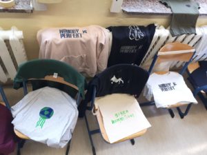 An den beiden verbliebenen Tagen erlernten die Schüler die Stenciltechnik/ Schablonenkunst, welche auch bei der Erstellung von Graffiti oder Street-Art verwendet wird. Mit dem neuerworbenen Wissen erstellten die Schüler eigene Stencils mit persönlichen Botschaften für eine bessere Welt und druckten diese auf mitgebrachte Kleidungsstücke.