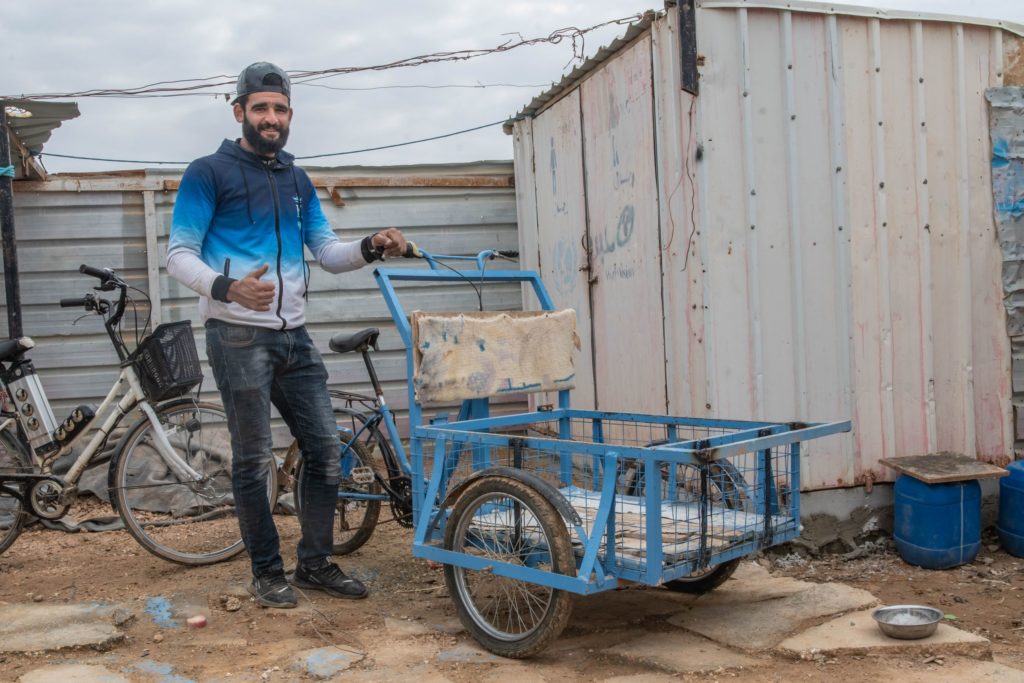 Aqil baute diesen Wagen, um seinem Nachbarn zu helfen, große Wasserbehälter zu transportieren. Einige Orte, wie die Gemeindezentren, haben fließendes Wasser, aber die meisten Menschen müssen Wassergallonen von einem Brunnen zu ihren Unterkünften transportieren. Aqil ist taubstumm und kommuniziert meist mit Handgesten. Einige Nachbarn lernten Gebärdensprache, um besser mit ihm kommunizieren zu können.