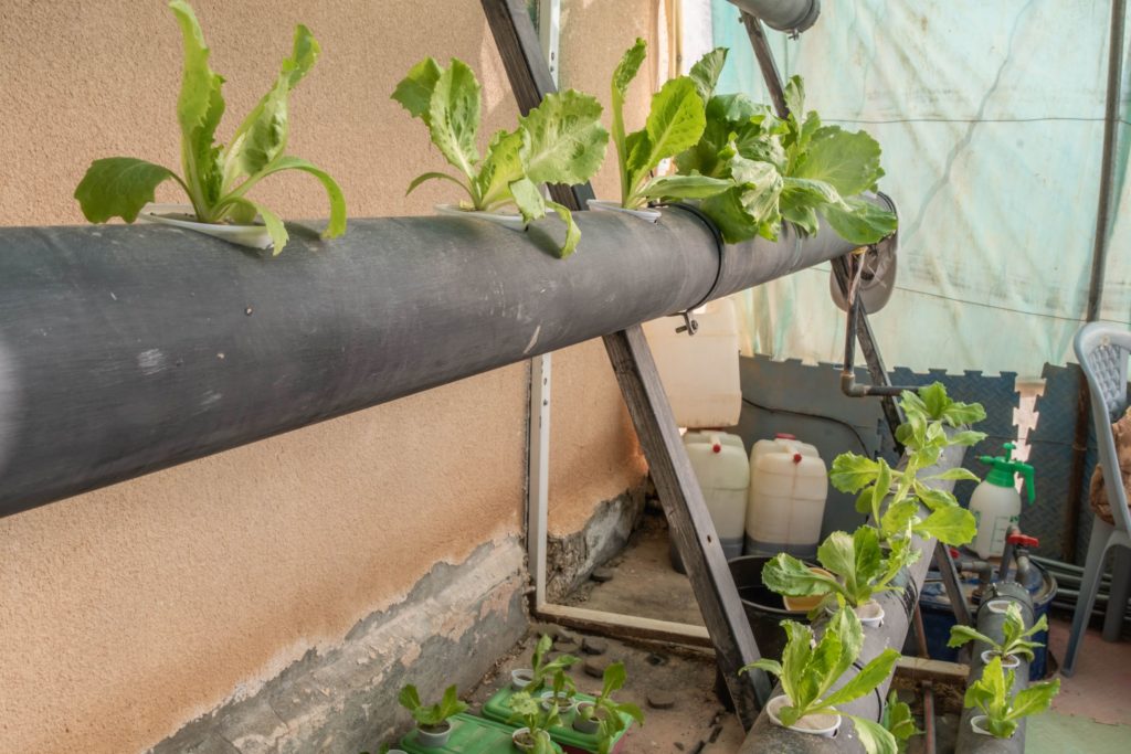 In den Gemeindezentren sowie in vielen der Gärten um die Hütten im Camp gibt es Hydrokulturen. Hier werden Samen in Wasser mit zusätzlichen Nährstoffen gegeben, um Gemüse anzubauen. Auf diese Weise wird kein Ackerboden benötigt.