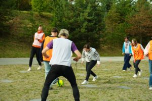Beim Fairplay Fußball war ich während der Erklärung ein wenig skeptisch, ob dem Spiel mit diesen Regeln nicht die Dynamik fehlt und es überhaupt Spaß machen kann. Es war dann aber doch ziemlich gut und sehr dynamisch. Ich kann mir zwar vorstellen, dass man manchmal Geduld braucht, bis die Regeln in allen Köpfen drin sind, trotzdem ist es genau deswegen toll und das Konzept mit den Handicaps ein schönes Element.