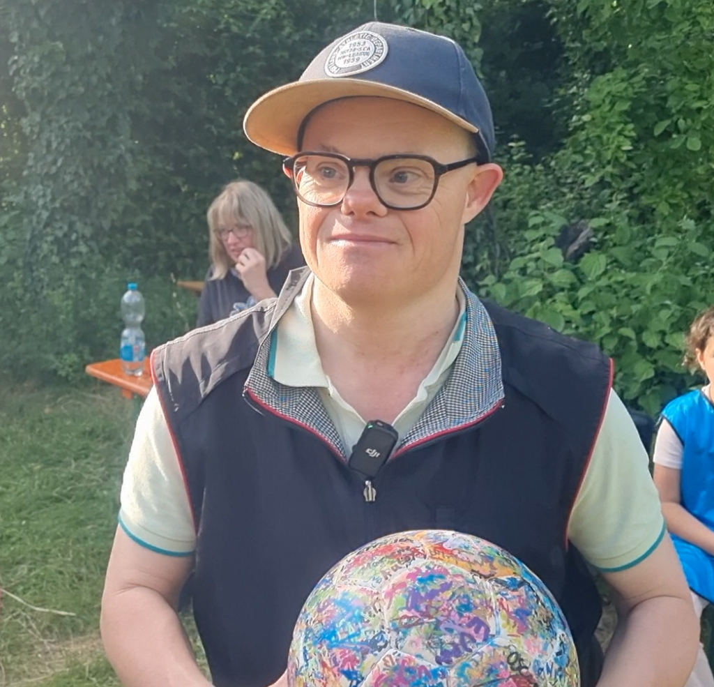 Armin mit dem Future Ball und dem Wunsch nach mehr Teilhabe und Sichtbarkeit von Menschen mit Behinderung