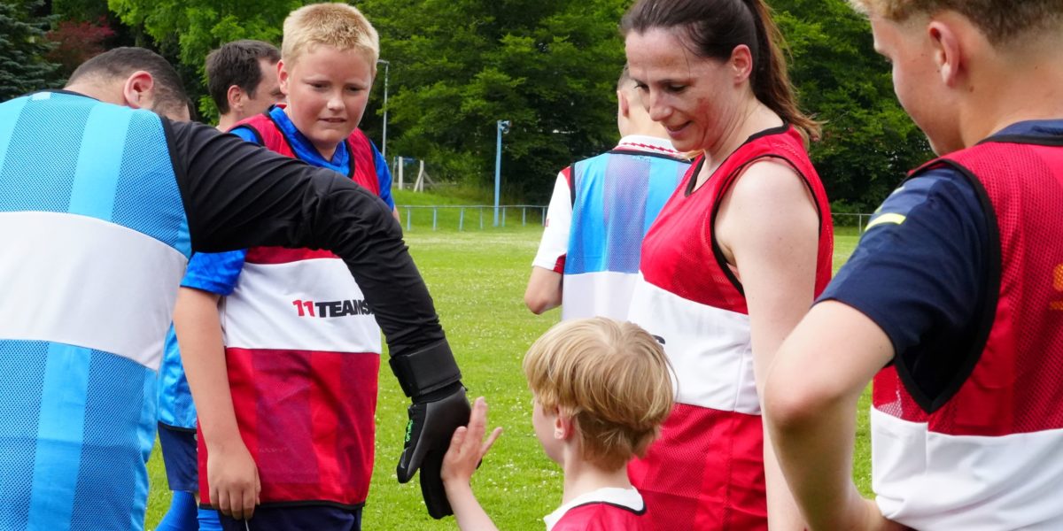 Respekt, Teamwork und Vielfalt – das sind die drei Säulen von Spirit of Football. Und selten konnte man sie so sehr erleben wie bei diesem Event in Schleusingen. Als wir ankamen, wurden wir schon freudig von dem Team des SC Schleusingen empfangen. Der Grill wurde schon angezündet und das Spielfeld war bereit. Neben unseren Spirit of Football Menschen, waren Mitglieder des SC Schleusingen, deren Unified Team und Mädchen eines benachbarten Vereins da. Nach einem gemeinsamen Aufwärmen ging es in den Turniermodus, in dem Menschen von 6 bis 50 Jahren, mit und ohne Behinderung sowie Jungen und Mädchen zusammen spielten. Das Einlaufen zu Champions League Musik war ein Muss, genauso wie die Handshakes. Nach einem fairen Turnier wurde das Team mit den meisten Siegen 😉 zum Sieger gekürt, und wurde von allen bejubelt. Bei Grillkäse und Bratwurst und einem Public Viewing der letzten Gruppenspiele ließen wir den Tag ausklingen. Es war ein superschönes Fußballfest und wir sind sehr dankbar, dass wir den SC Schleusingen als Partner haben. Wir freuen uns schon auf die nächste gemeinsame Veranstaltung!