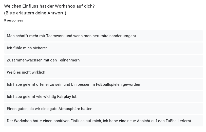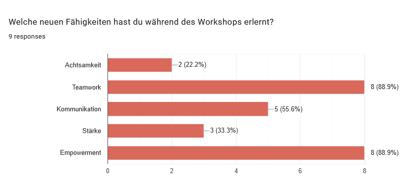An Ende des Workshops baten wir die Teilnehmerinnen, ihr Feedback in einem Fragebogen festzuhalten. Hier ein kleiner Auszug der Antworten: