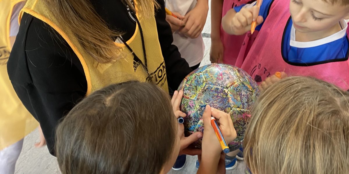 Im Anschluss folgte Francescas Dilemma-Theater. Um auch die sportlichen Kids abzuholen, ging es danach in die Turnhalle zum Fairplay-Ball spielen. Hier war es noch einmal wichtig die Fairplay-Regeln zu wiederholen, damit alle mitmachen und Spaß haben können. Dann ging es auch schon los! Die Regeln wurden sofort super umgesetzt und bei der abschließenden Reflexion wurde deutlich, dass es ALLEN sehr viel Freude bereitet hat. Der krönende Abschluss war wie immer für alle das Unterschreiben auf „The Ball“!