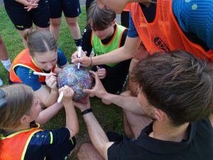 Ein besonderer Moment wartete am Ende jeder Einheit: Der Ball mit tausenden Unterschriften aus aller Welt, der sinnbildlich für die verbindende Kraft des Fußballs steht. Auch unsere Juniorinnen – von den C- bis zu den F-Mannschaften – durften ihre Namen hinzufügen. Ein Moment voller Stolz und Gänsehaut, der sicher noch lange nachwirkt.