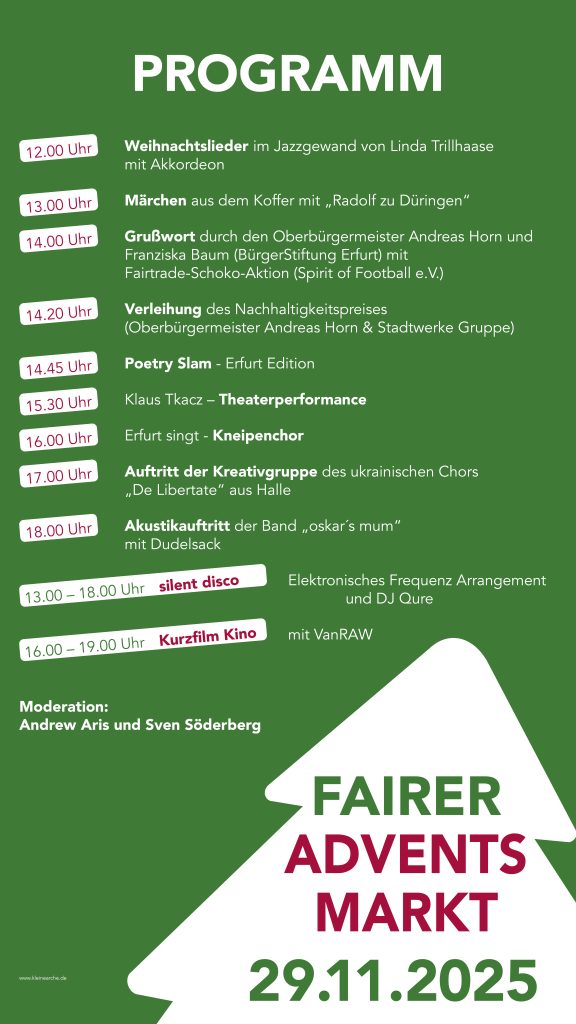 Fairer Adventsmarkt 2025 in der Barfüßerkirche Veröffentlicht am 01/12/202501/12/2025 von Sven Söderberg https://www.instagram.com/reel/DRro3O7jbDP/?igsh=MWd5Y21sZWF4dHZmNQ== https://www.instagram.com/reel/DRrCE6_CGEF/?igsh=MTFzc2czczNyOHN0MA==