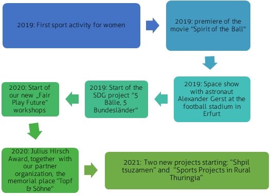 Spirit of Football e.V. is committed to openness and against exclusion of any kind. The core values of our non-formal educational work are based on the trips by “The Ball” to the FIFA World Cup. Since 2002, The Ball has reached over 40,000 people through the universal language of football and its intercultural power. These experiences inform the school curriculums and extracurricular educational offers that we have been implementing since 2010.