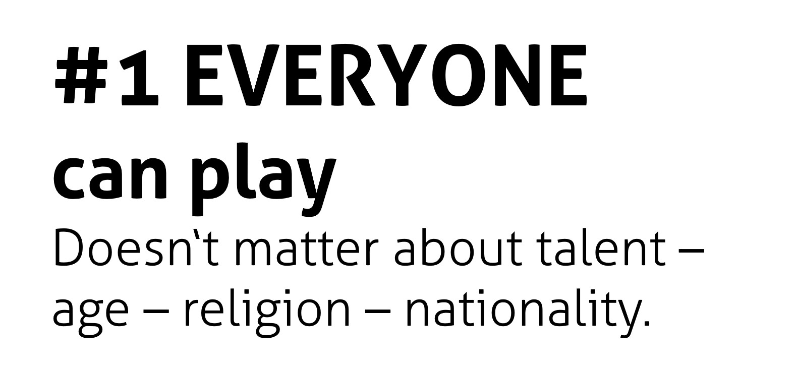 The three pillars that our fair play culture is based upon are diversity, respect and teamwork. We aim to integrate them into our organizational culture. These values play a fundamental role in all of our activities and projects. From them, we have deduced six fair play rules.