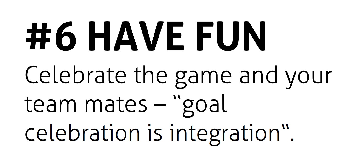 The “head, hand, heart” approach, our fair play culture and the 6 fair play rules are the foundation of our work. The aim is for the target group to connect the Spirit of Football learning experience with their own daily lives. This approach is repeated in the implementation of our methods, overtime a change in thought and action of the participants follows.
