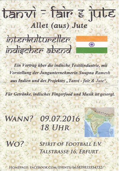 Der Samstagabend steht ab 18 Uhr im Wächterhaus 1 ganz im Zeichen der indischen Textilindustrie. Los geht es mit einem Vortrag von Lukas Geck über die Textilindustrie in Indien und was daran eigentlich kritisch z […]