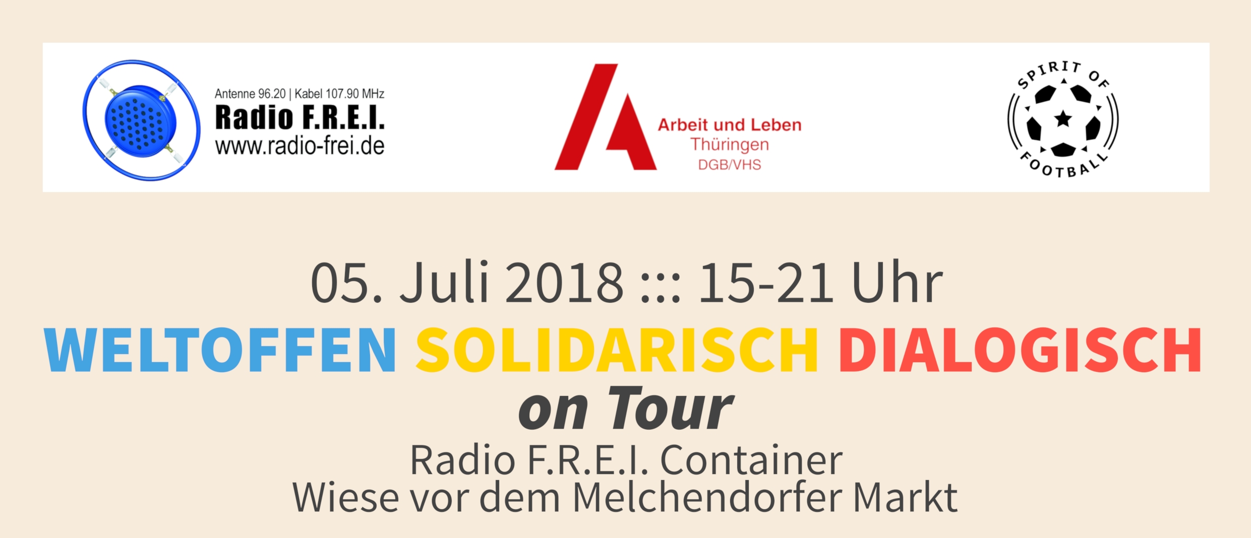 Weltoffenheit und Solidarität tourt durch den Osten Sieben entwicklungspolitische Tagestouren durch Ostdeutschland, zwischen dem 3.Mai und 5.Juli 2018