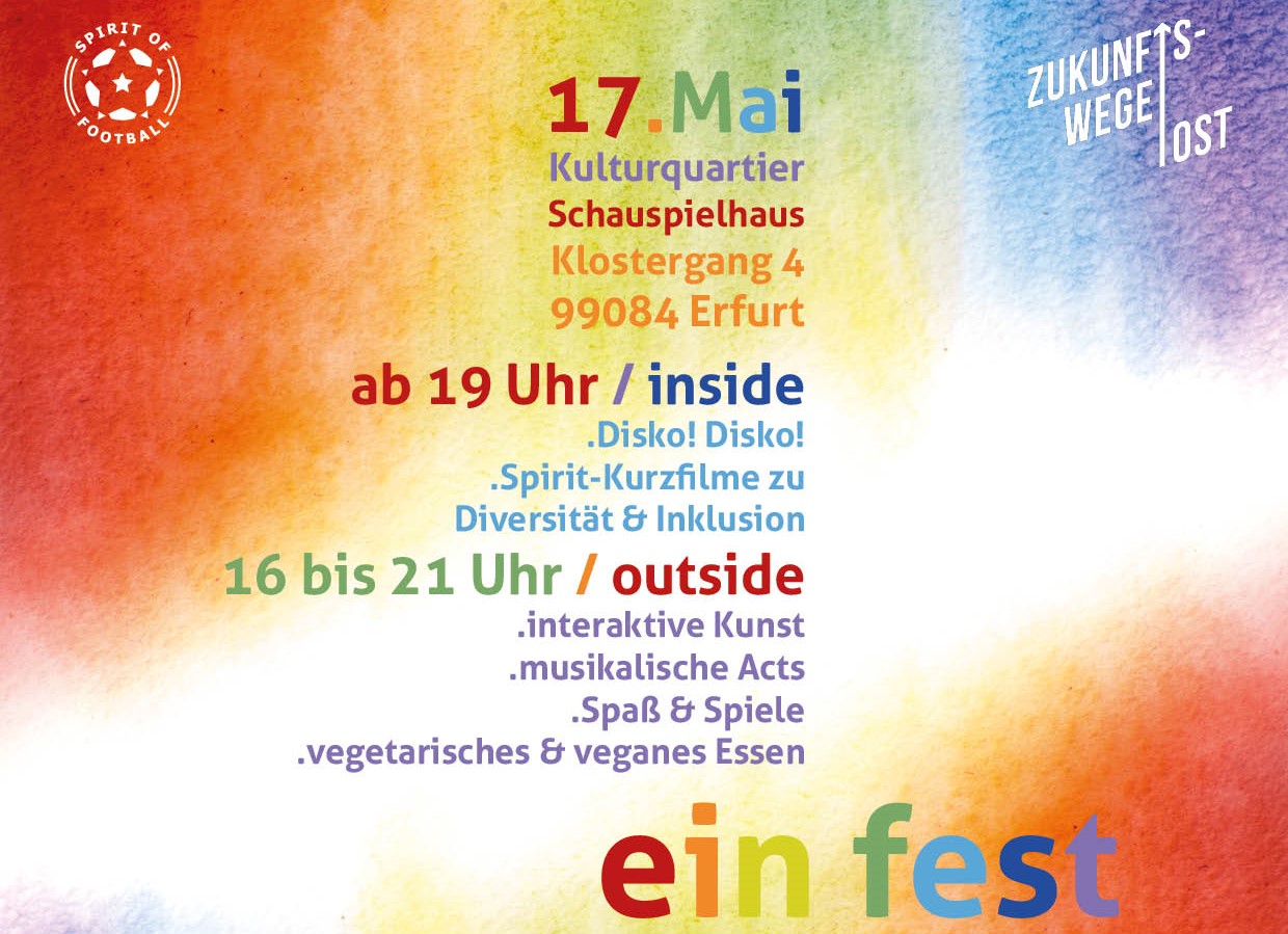 Hallo liebe Freund*innen von Vielfalt und Inklusion, am Samstag, den 17. Mai, feiert Spirit of Football einen fröhlichen Tag der Vielfalt und Inklusion – und wir würden uns riesig freuen, wenn Du dabei bist! Ab 16 Uhr geht’s draußen los: Solo-Acts, ein […]